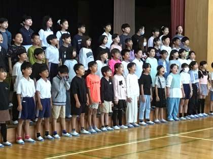 次に、4年生が体育館で校歌を歌いました。「本当にじょうずですね」とほめてもらいました。
