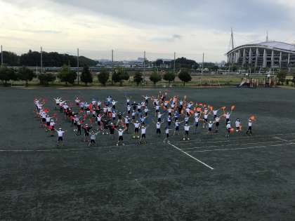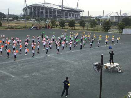 10月25日 テラスポ練習 5,6年フラッグス 公開日 2024/10/25 更新日 2024/10/25 学校行事 5,6年生はフラッグスの練習をしていました。クラスごとに色分けされた旗がきれいに舞います。隊形移動も複雑なので、練習にも力が入ります。