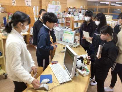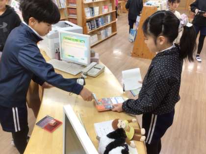 12月5日 わくわく図書BINGO 公開日 2024/12/05 更新日 2024/12/05 学校行事 図書委員会が、みんなの図書館の利用をうながすために、「わくわく図書館BINGO」を行っています。「クイズの本を借りる」「図鑑を借りる」「じゃんけんで2回連続勝つ」など、わくわくするような項目が並んでいます。 今朝は天気が曇りだったので、「くもりの日に借りる」という項目がクリアできる絶好の日で、朝から多くの子が図書館に来ていました。