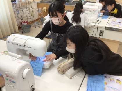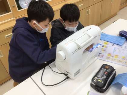 1月21日 5年家庭科 ミシン 公開日 2025/01/21 更新日 2025/01/21 各学年から 5年生が家庭科の授業でミシンの使い方を学んでいます。 ミシンの使い方を一つ一つ声に出しながら確認してる姿が初々しいです。 縫いたいところをまっすぐに縫うことができたでしょうか。
