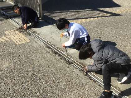 正門のレールに砂利がたまってしまい、門の動きが悪くなってしまったので、手作業で砂利を取り除きました。自分の手袋を砂だらけにしてしまうのも一切ためらうことなく、せっせと取り組みました。ありがとう。