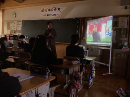 1月29日 5年夢の教室 公開日 2025/01/29 更新日 2025/01/29 各学年から 5年生が「夢の教室」を行いました。 以前サッカーのグランパスエイトの選手だった田中さんたちに来ていただき、前半は体を動かすゲームを体験し、後半は軽快なトークを聞いて楽しみました。 実際にJリーグで活躍していた時や、日本代表として試合をしていた時の映像を見ると、すごく有名な選手がここ豊田から世界に出て行ったことを誇らしく感じました。 とても貴重な体験でした。