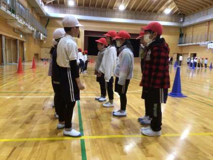 1月30日 1年体育ゲットボール 公開日 2025/01/30 更新日 2025/01/30 各学年から 1年生が体育でゲットボールをしています。チームの仲間が取りやすいようにボールを投げること、声を掛け合ってパスのチャンスを生み出すことが得点の秘訣のようです。