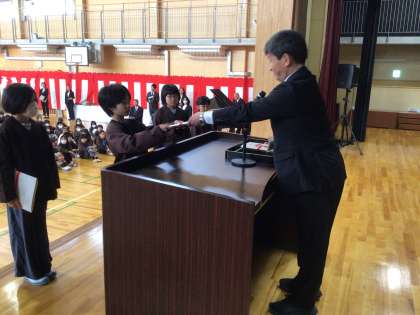 修了式を行いました。 校長先生から終了証を受けとり、1年間の頑張りをねぎらっていただきました。