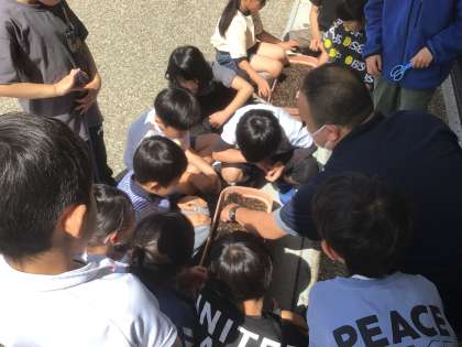 3年生が、理科の授業で観察するオクラの種まきをしました。