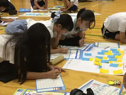 9月17日 5年総合マイタイムライン 公開日 2025/09/18 更新日 2025/09/18 各学年から 5年生の総合で防災を勉強しています。今回は、講師として愛工大の先生と学生さんに来ていただき、お話を聞きながらマイタイムライン作りをしました。大雨や洪水で避難することになったときに困らないために、そして逃げ遅れないために、いつから何を準備しておいたらいいのかを考えました。