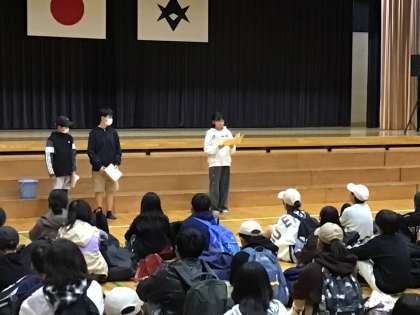 修学旅行2日目 ほぼ予定通りに学校に到着して、帰着式を行いました。