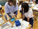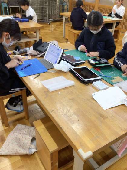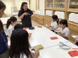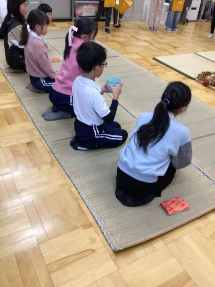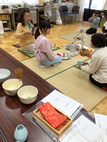 地域の講師さんにお茶の作法や、消しゴムハンコの作り方を教わっています。