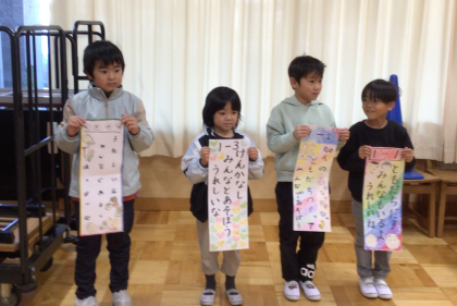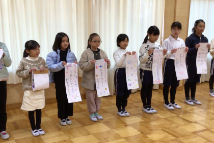 校長先生によるほんの読み聞かせと、クラスの代表児童による人権標語の発表がありました。