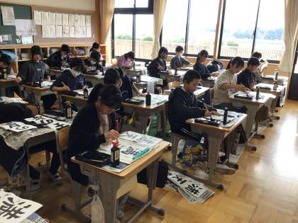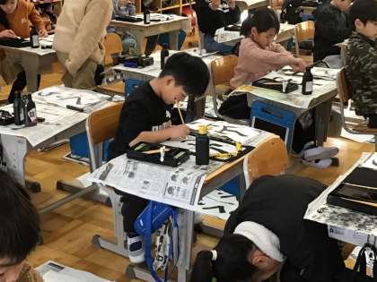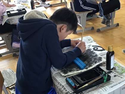 新年の恒例行事「書き初め大会」を行いました。 どの子も真剣に取り組んでいました。