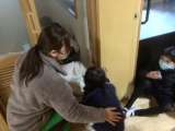 1〜4年生は煙道体験をしました。煙を充満させた薄暗い家庭科室の中を、手探りで進ん...
