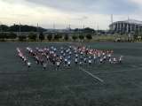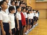5,6年生はフラッグスの練習をしていました。クラスごとに色分けされた旗がきれいに...