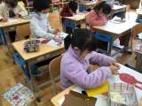 1年生が図工で紙版画の版を作っています。 紙を細かく切って貼る作業に、どの子も集...