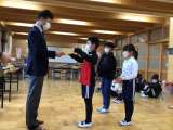 1年生から6年生へ、体育館中に響く大きな声でお礼の言葉を伝えました。 その後は、...
