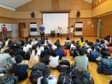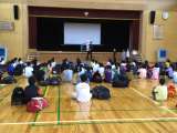 講師の方をお招きし、3年生がリコーダーの吹き方を学習しました。 息づかいをシャボ...