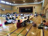 5年生が明日からのキャンプに向けて荷物チェックを行いました。 「寝袋ありますか?...