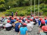 朝のつどいを行いました。 みんな元気にキャンプ2日目を迎えました。