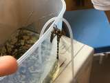 教室前の廊下で育てていたトンボが生まれました。今日がトンボの誕生日です。朝から大...