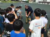 トヨタのラグビーチーム、ベルブリッツの選手の皆さんが来校し、4年生にラグビーの楽...