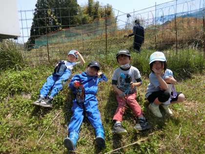 暑いです。畑作業の手を休めて、お茶休憩をしています。学校上の畑からは学校全体が見下ろせます。土手からプールを見下ろして、子どもたちが「プールに入りたいなあ」と言いました。それから、プールや海にまつわる思い出話をいろいろとしてくれました。足がつかないところで溺れてパパに助けてもらったこと、家のプールに水を入れすぎて溺れたこと。話したいことがたくさんあって、話すのも聞くのも大変です。微笑ましいです。
