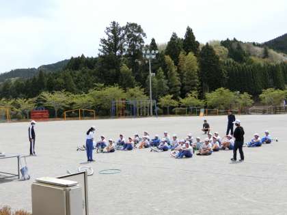 1,2年生もテラスから応援していました。全校51人の思いが一つになる運動会にできたら素晴らしいなと思っています。これから、子どもたちがお家で運動会練習のことを話すと思いますので、ちょっと手をとめて「すごいね!」「うーん、そうなんだ、楽しみだね」「頑張っているんだね!」と聞いてあげてください。お願いします。