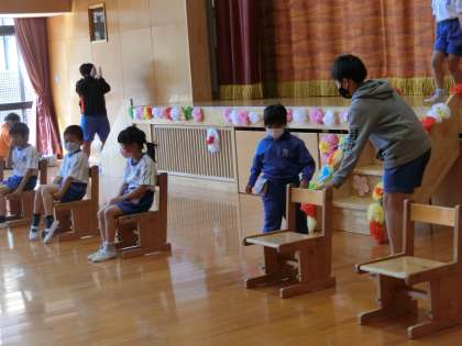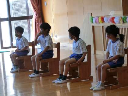 新年度がスタートして少し時間が経ちましたが、今日の2時間目に「1年生を迎える会」を行いました。1年生の子たちが舞台上から入場してくるのを拍手で迎えました。司会は6年生。1年生が座る椅子のところまで6年生がエスコートしました。