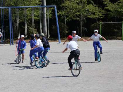 4年生以上の子どもたちは運動会に向けて、連日、一輪車練習を頑張っています。体育の授業以外でも毎放課、自分たちで声を掛け合い、時間がある限り練習しています。本当に感心するぐらい自主的に取り組んでいます。