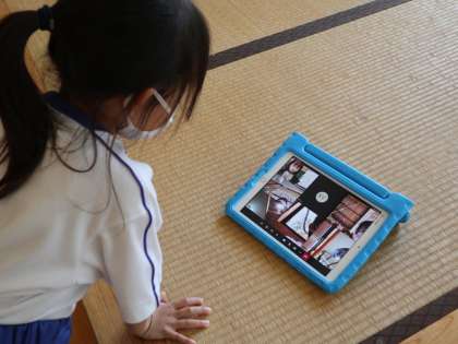 昨日の4時間目、全校でそろえてタブレットによる「リモート朝の会練習」を行いました。子どもたちは自分のタブレットを準備して、「Teams」というアプリにログインし、画面上で先生や友達の顔を見ながらやり取りをしました。