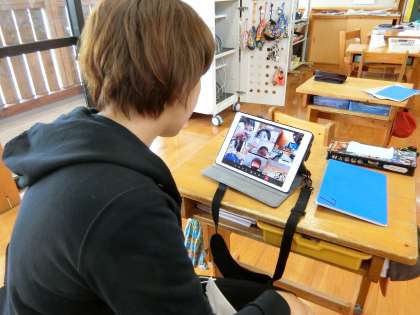 今朝は、前回よりちょっと進化した形で「リモート朝の会」を行いました。朝はいろいろと忙しい時間帯なので、必ずしもタブレットを使うのは朝じゃなければいけないと限定せずに1日1回はタブレットを各学級で活用し、実際にオンライン授業ができるところまでを全校体制で行っていきます。