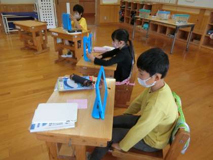 3年生の朝の会です。マイクのオン・オフのルールにも慣れて、お互いのマイクでハウリングを起こすこともなくなってきました。
