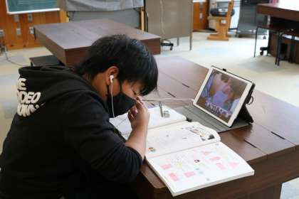 先生は、タブレットを使って話したり、黒板を映したり、子どもが取り組んでいる様子を見るために画面の切り替え操作をしたりする必要があるので、そういう点が普通の授業より忙しく、今後、改善の余地があると思いました。よりスムーズな遠隔授業のために、あると便利なものについても分かりました。