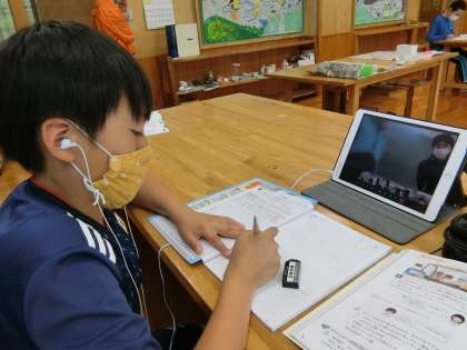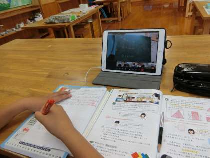 さあ、リモート授業では、子どもたちの振り返りや感想を、先生がどうチェックして、どう共有するんだろうと思って見ていました。先生が出した指示は「書いた振り返りを写真に撮ってね」でした。写真に撮ったものを送ると、友達がどんなことを書いたのか、子ども同士でも共有することができます。今日は時間がなかったので、結局、ノートを画面にかざして先生に示して終わることになりました。それでもけっこうちゃんと全員のノートがTeamsの画面に並びました。このあたりも、指導と慣れがこれから必要だと感じます。