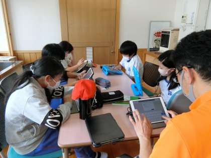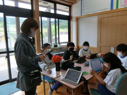 昼放課に、保健委員会の子たちが保健室に集まりました。タブレットを使って保健のアンケートを行う計画を立てており、試しに保健委員がアンケートに答えてみて、どのように集計画面に反映されるか見ていました。一人が答えるたびに、円グラフが動いて反映されていきます。保健の先生が作ったアンケートです。