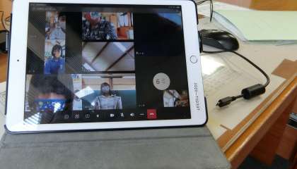 朝の会の時間です。3年生のTeamsに入ってみました。子どもたちはいつもの「タブレットでリモートスピーチ」の最中です。ある子が「ぼくは、ひよこの卵を温める器械を買いました。今日届きます」とスピーチしていました。画面の背景から、その子は教室のベランダからスピーチしているようです。