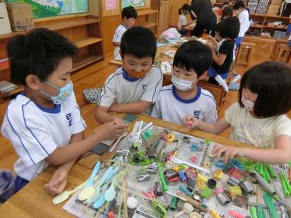 今日は講師をお招きし、陶芸教室を行います。毎年行っているもので、各学年のテーマに沿った作品を子どもたちが粘土で作ります。作った作品は焼いてもらいます。