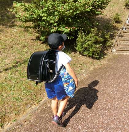 月曜日です。給食のエプロン、シューズ、水筒、先週持ち帰ったタブレット。今日は荷物が多くて大変です。