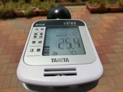 という豆知識はさておき、2時間目のあとの放課は急に太陽が顔を出して、気温が26度まで一気に上がりました。下山は昨日も雨が降ったそうで、湿度が高く風がないので、WBGT値も高めです。まだまだ危険な暑さ指数までは上がっていませんが、急に暑くなる時は注意が必要です。