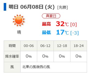 明日の最高気温は32度の予想です