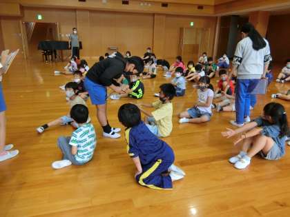集会はいつも多目的室で行っています。換気はしますがエアコンがあるので夏も冬も快適です。今週土曜日の文化交流活動の笑劇波さんの劇(←この6月から「笑劇派」から「笑劇波」に劇団の名前が変わりました)もこちらで行います。ご覧のとおり密になりません。保護者の方は2階のテラスから見ていただく形になります(テラスに椅子を準備します)。授業参観のあとでお時間がありましたら、ぜひご参加ください。