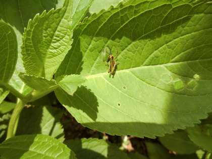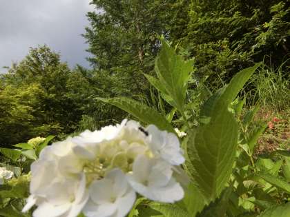 紫陽花 公開日 2021/06/24 更新日 2021/06/25 校長室から 紫陽花の花はきれいですが、葉っぱの観察もおもしろいです。いろいろな生き物に出会います。3年生国語の教科書に「自然のかくし絵」という説明文がのっています。うまく隠れている生き物、ちっとも隠れていない生き物、のんびり過ごしている小さな生き物たちを見つけました。何の生き物かお子さんと見つけてみてください。3枚目の写真はピンボケです。白い花びらに黒い生き物がいます。