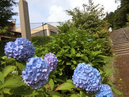 あじさい坂の紫陽花です。青みがかった白が美しい紫陽花、青から紫に色が変わっていく紫陽花。一つ一つ見ていくと色や形の美しさに見とれます。光と影が紫陽花の複雑な造形を際立たせています。