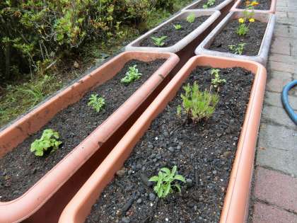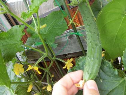 昨日の昼に「花いっぱい活動」で子どもたちが「マイプランター」の花の植え替えをしました。種から育てたマリーゴールドなどがプランターに植えられています。まだ小さい苗ですが、秋が近づく頃には生長して花をたくさんつけると思います。キュウリがまたまた大きくなっていました。