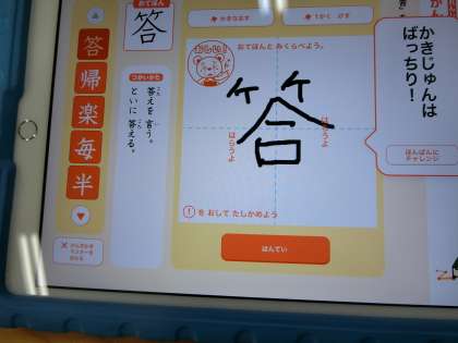 タブレット先生は几帳面でなかなか厳しいです。うまく使うと丁寧な漢字学習につながると感じました。よくできています。