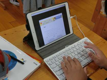 6年生教室の朝の様子です。今朝もブラインドタッチのトレーニングをしていました。私が教室に入っていっても気が付かないぐらい、子どもたちは集中してタブレットに向かっていました。朝の教室に、張り詰めた雰囲気と、爽やかな緊張感が漂っていました。子どもたちの様子を見て静かに教室を後にしました。