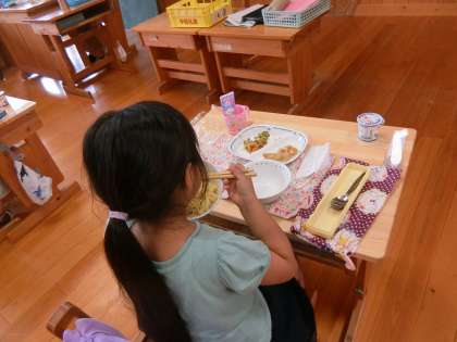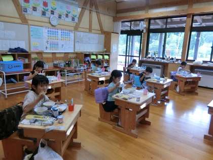 家族や友達、先生。一緒に食べる時、「おいしいね」「ねえねえ、昨日家でね…」いろいろおしゃべりしたいことが次々に頭に浮かんできます。ご飯を一緒に食べることは、本来、楽しい時間やおいしい時間を共有することですから、同じ空間にいながら黙って食べるのはやっぱり変な感じがします。おしゃべりを我慢して子どもたちは黙食をがんばっています。