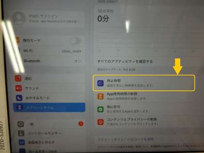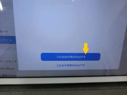 「これは自分用のipadです」→休止時間→「休止する時間を設定する」で休止を開始する時間(原則午後9時)と休止を終了する時間(原則午前6時)を設定します。これで終わりです。