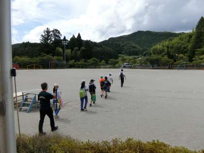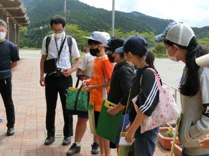 今日は五平餅調査日和です。曇り時々晴れ。熱中症の心配は炎天下の日より低いですが、お家の方と子どもたちに校外学習のための健康観察表を書いてもらい、水筒と探検バック、お財布を持って、ひとり100円のデマンドバスに乗り込んで出発です。行ってらっしゃい!たくさん勉強して、口の周りに味噌をつけて帰ってきてください。