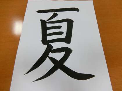 正解です。私が示したのは「夏」という漢字の象形文字で、仮面をかぶった人が手足を動かして踊っている様子を表したものから、この漢字ができたそうです(ほかにも由来はあります)。「みんなも、元気に夏を過ごそう」」と話しました。