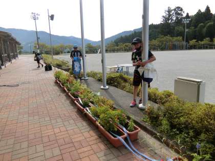 子どもたちが登校してきました。今朝は民生委員さんが、あじさい坂で子どもたちを迎えてくれました。朝のお忙しい時間にありがとうございました。登校してきた子どもたちは、さっそく、旗の掲揚や体育倉庫の鍵開けをしていました。頼りになる高学年です。