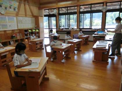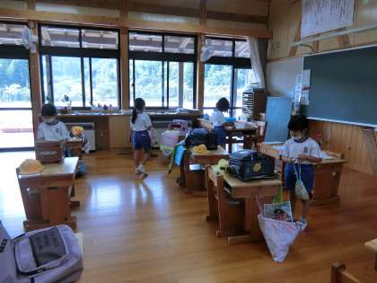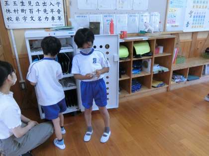 子どもたちはとても落ち着いて荷物を整理したり、先生に宿題などを出したり、タブレットを充電保管庫に収めたりしていました。朝の支度がすっかり身についています。